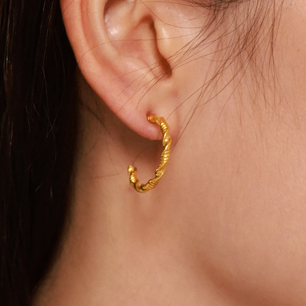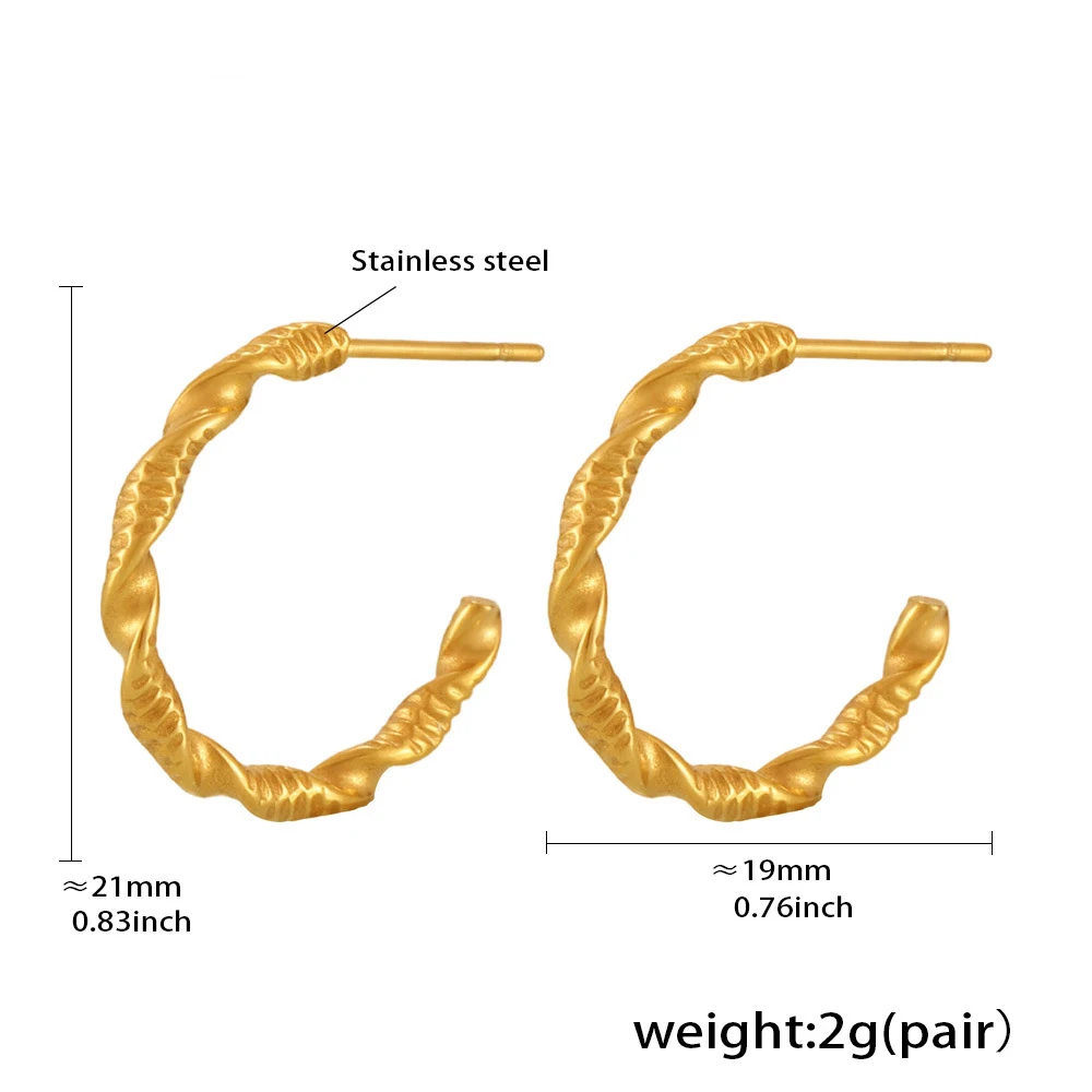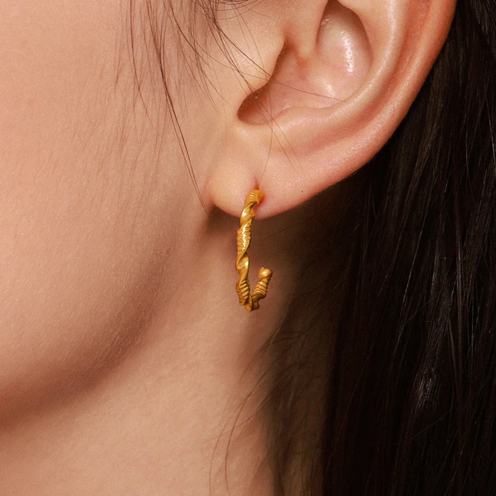 YUKAM Vintage Punk Jewelry Geometric Stainless Steel Gold Plated Textured CC Shaped Spiral Twisted Hoop Earrings for Women Gifts